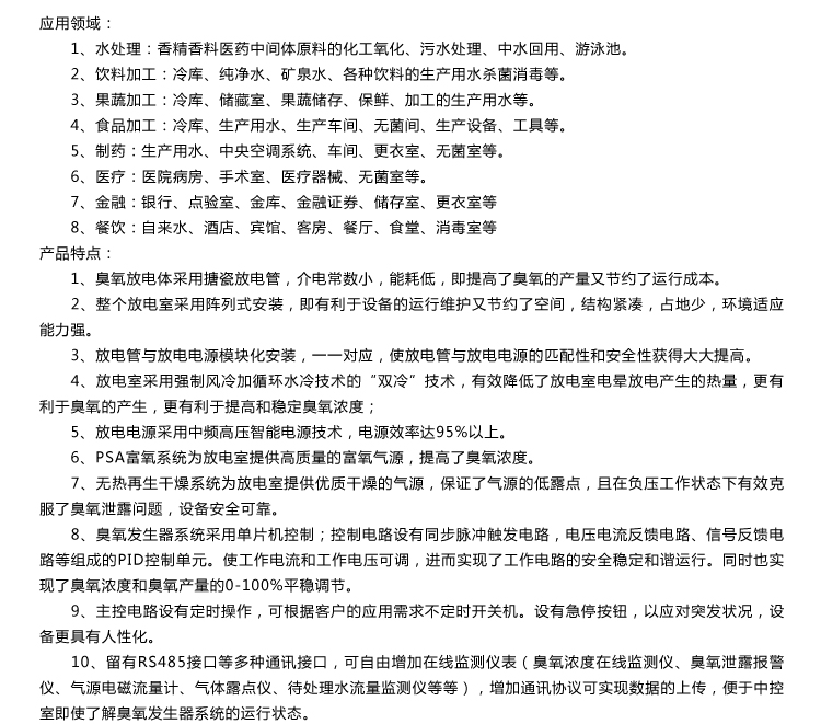 空氣源中型臭氧發生器參數列表 |